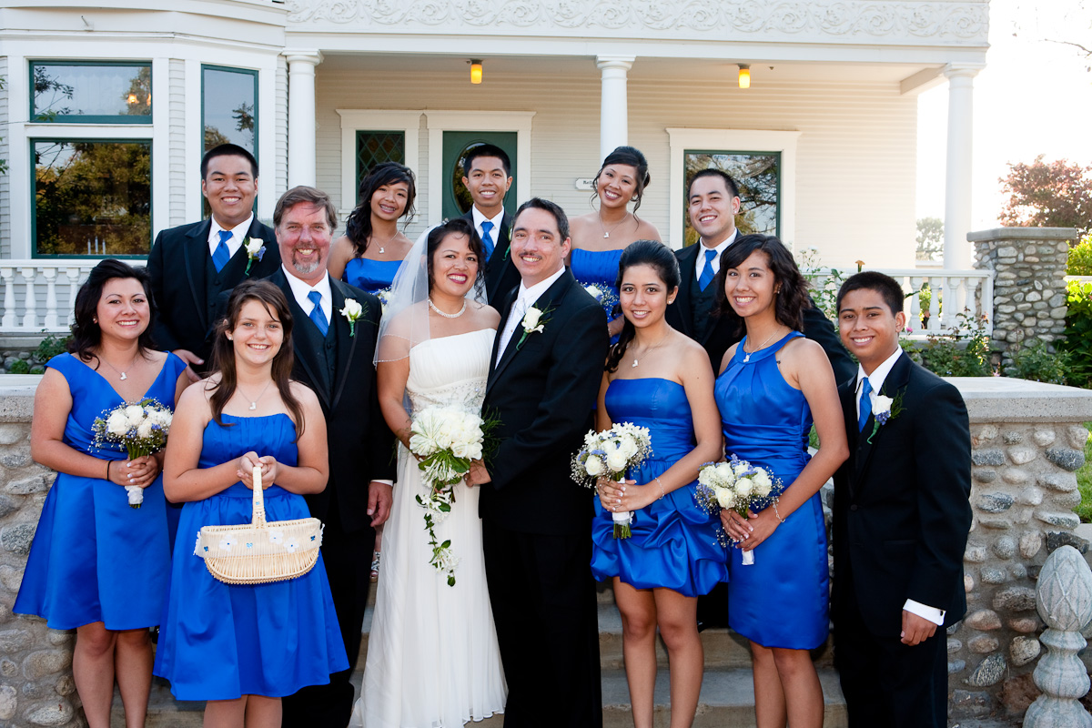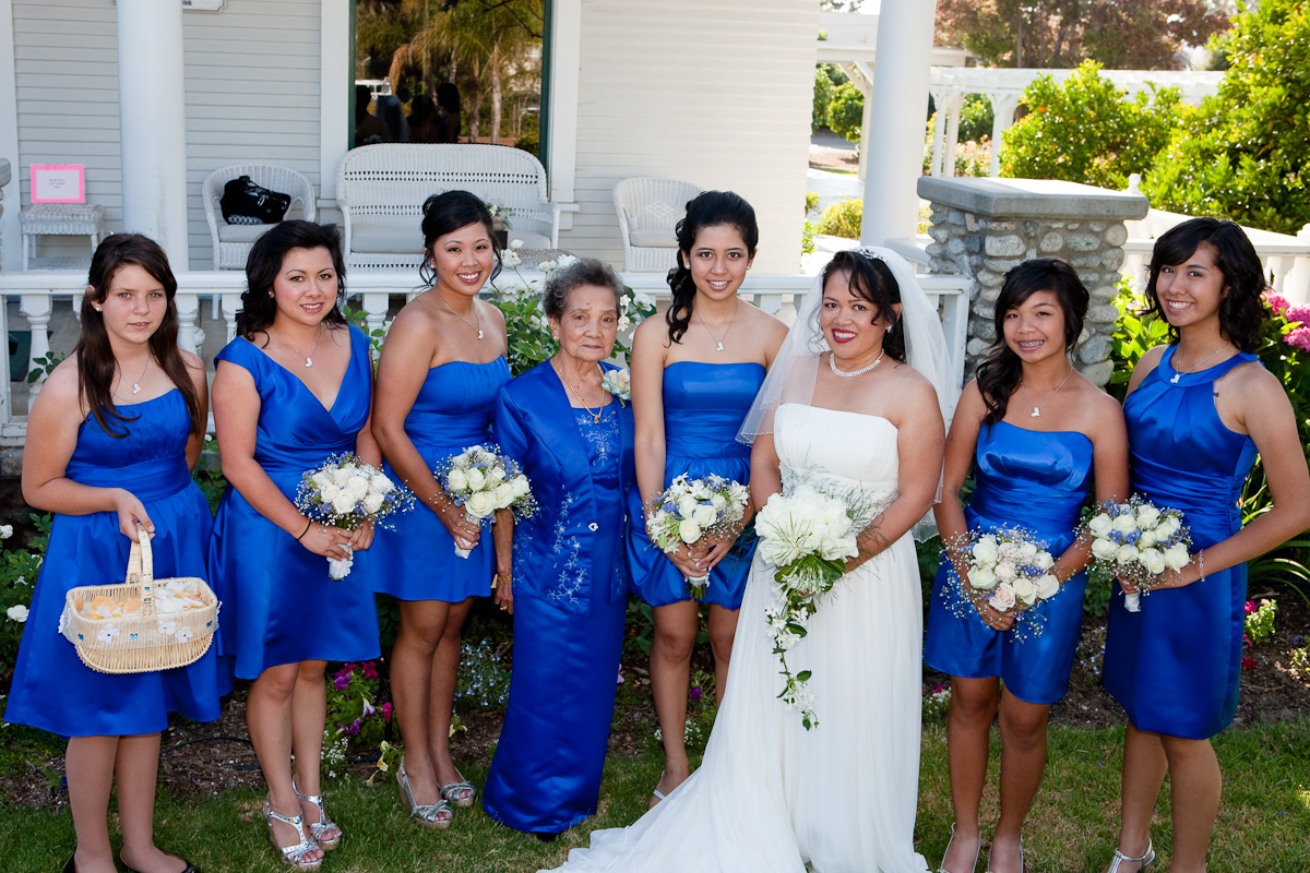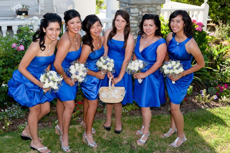 The bridesmaids sparkled in royal blue.