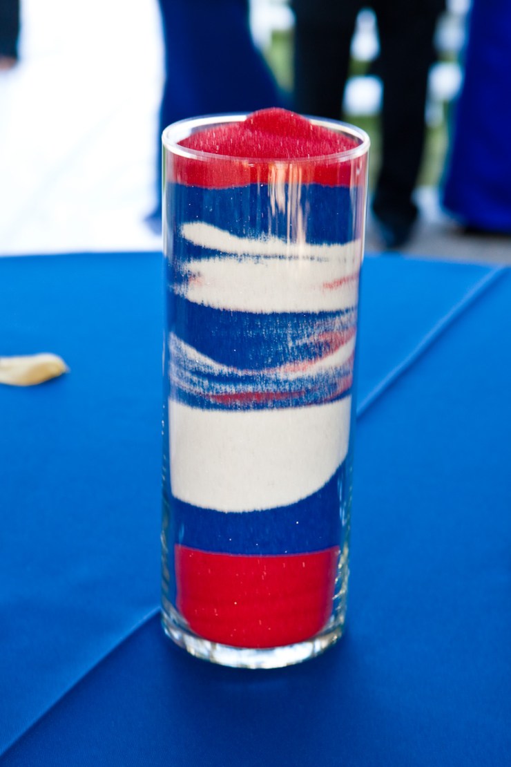 Since the wedding was 1 week before 4th of July, it was only proper to have the sands in the blue, white and red colors. :)