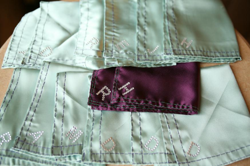 I told Tammy, my bridesmaid, to use safety pins on the pocket squares so they can stay in place.
