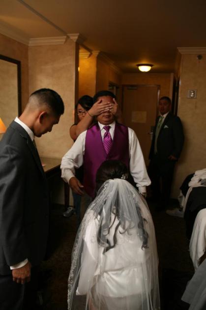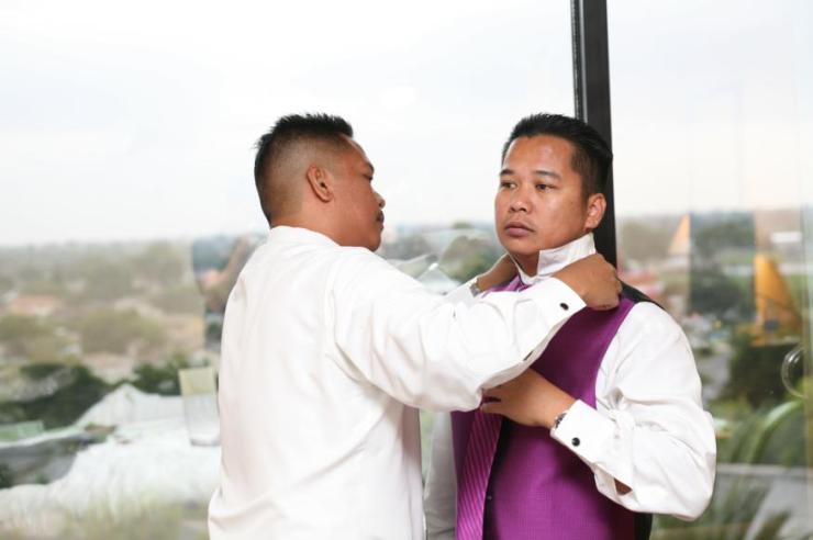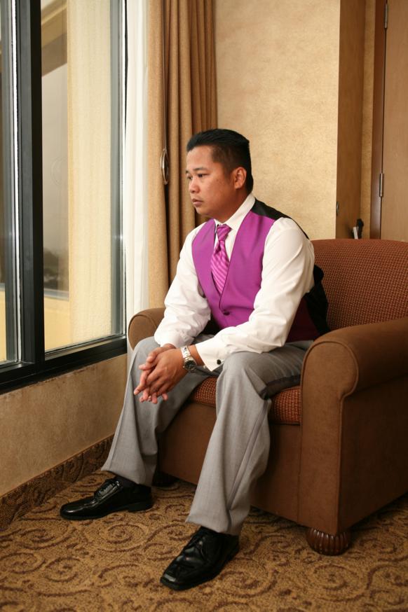 Each groomsman came into my room so I can pin their boutonnieres. As for Renrick’s, I had 1 of the guys wear his jacket so I can pin his boutonniere :)