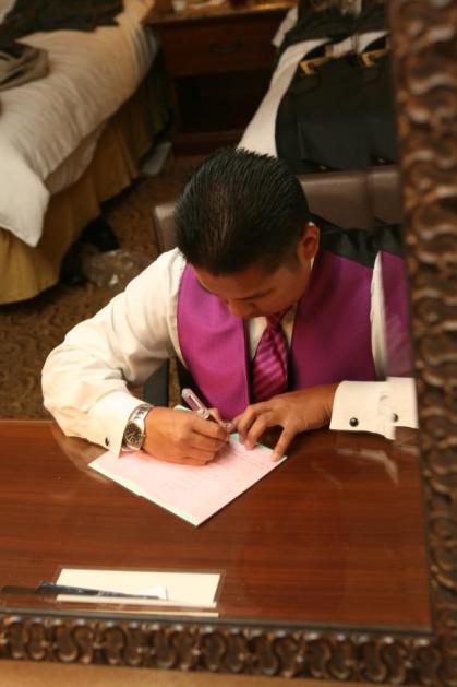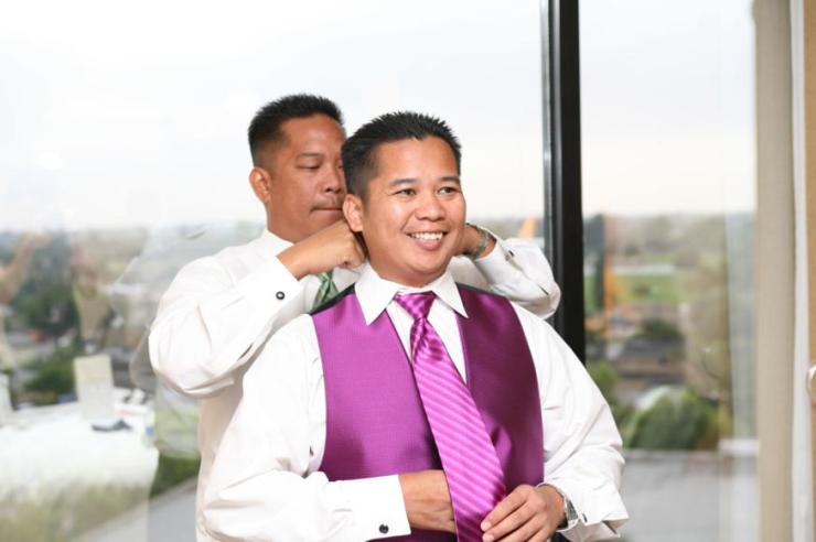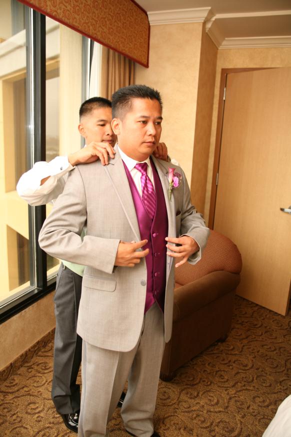 The boys getting ready. Pay attention to Renrick’s suit color…of course it wouldn’t be a wedding without a little crisis. I will go into detail a bit later.