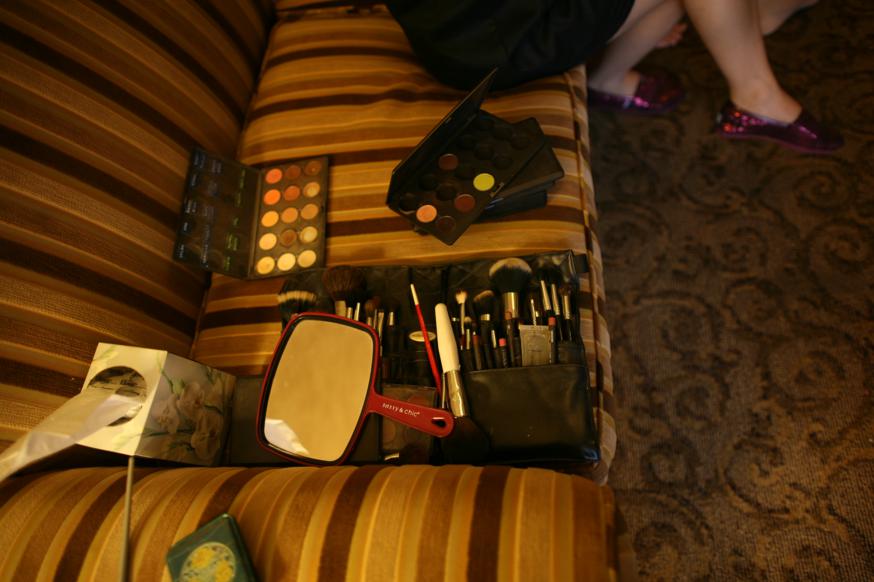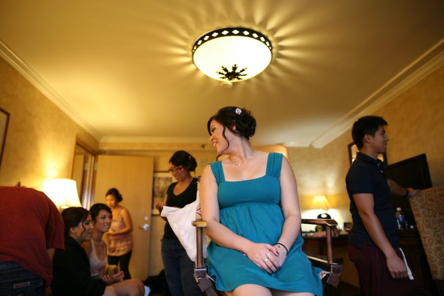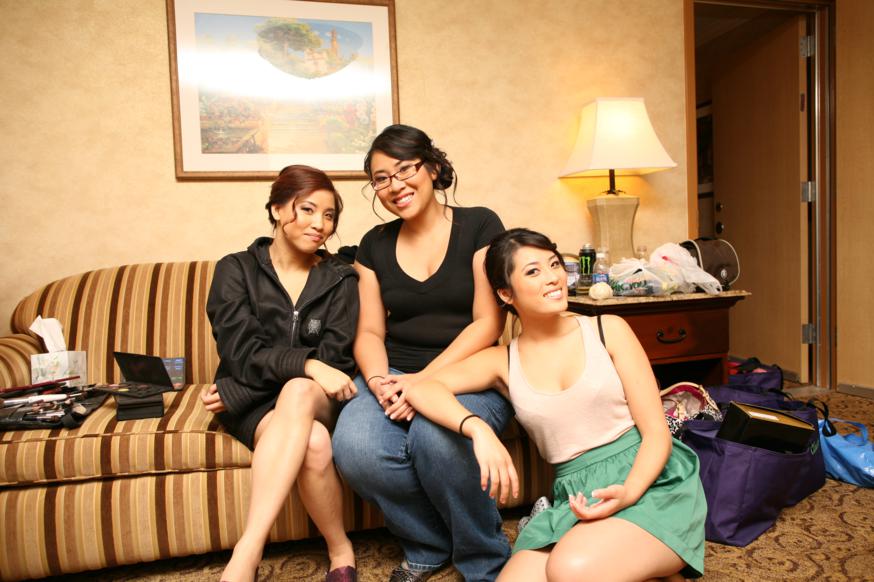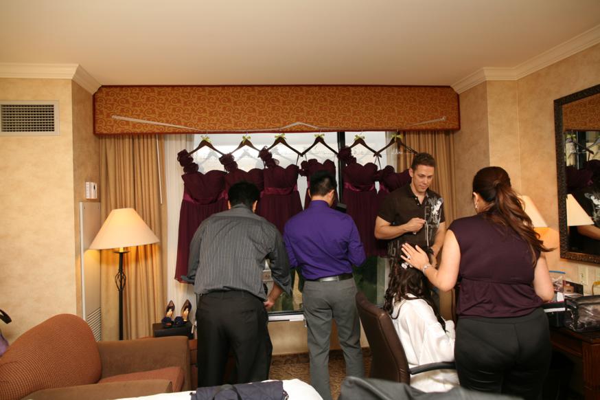 There’s not much privacy while getting ready. Look at all these people in the room while I was getting hair and makeup.