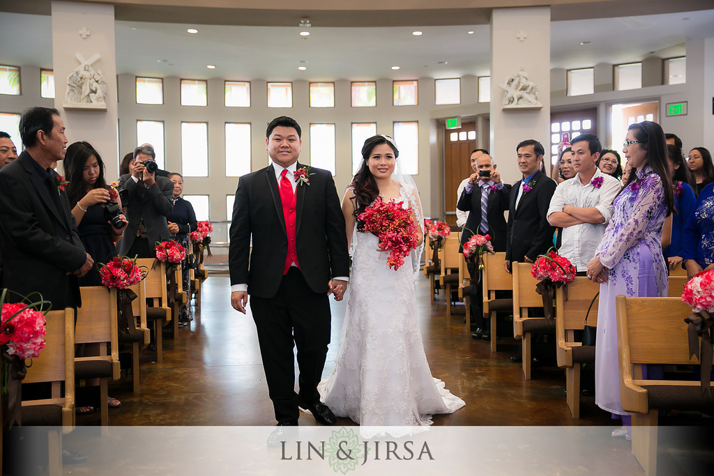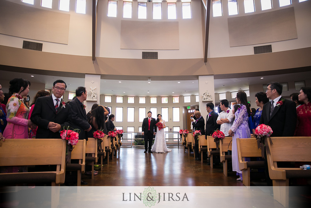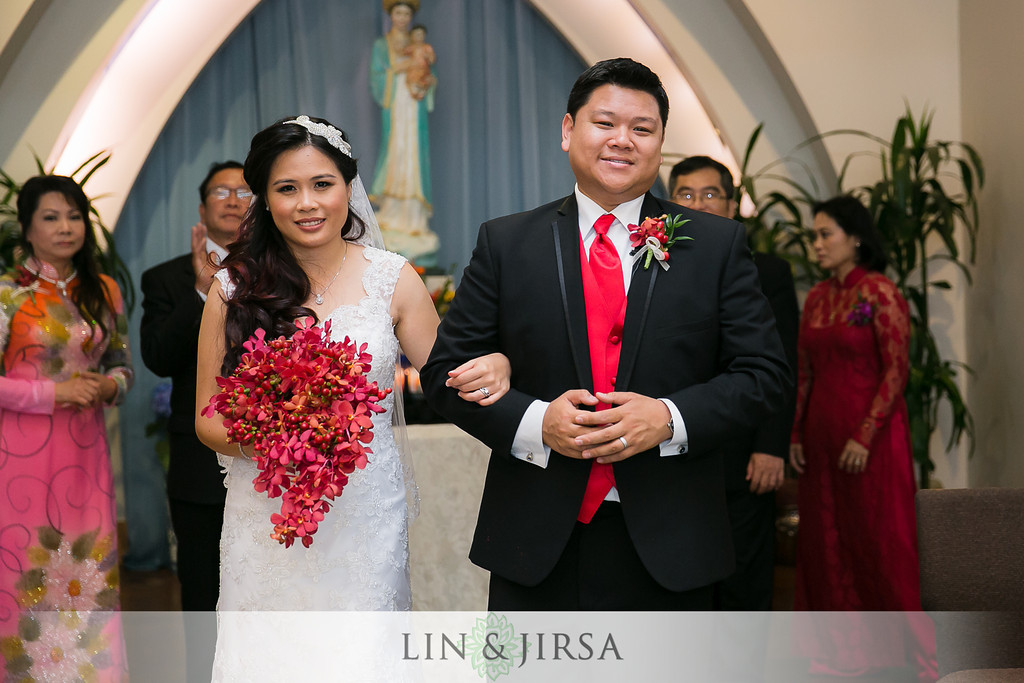 For the Church Ceremony, Hieu and Hung went with a Vietnamese tradition where the bride and groom walk down the aisle together.