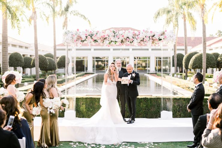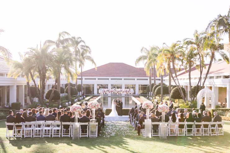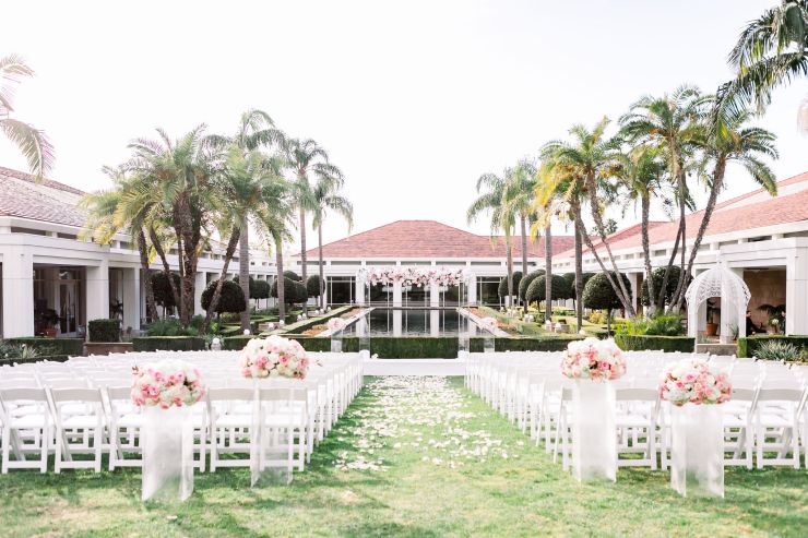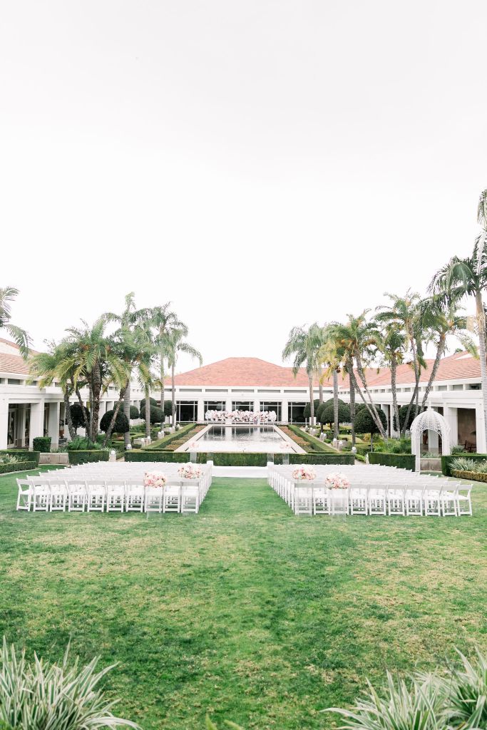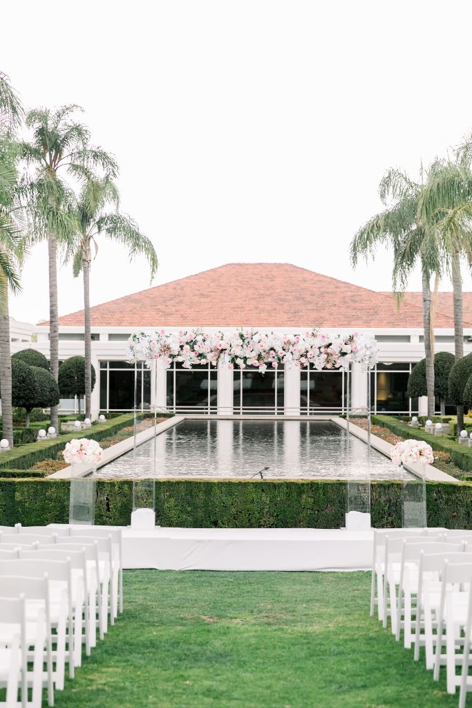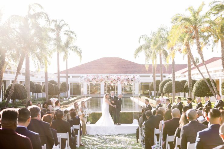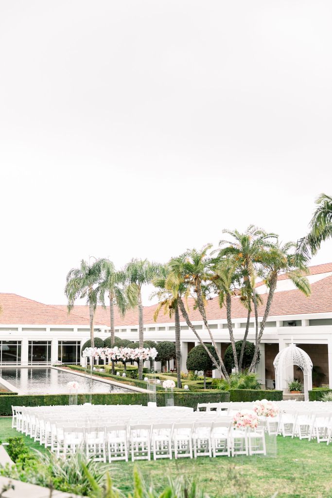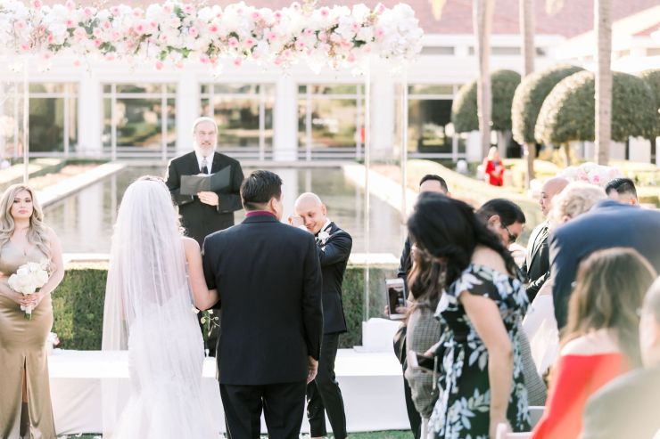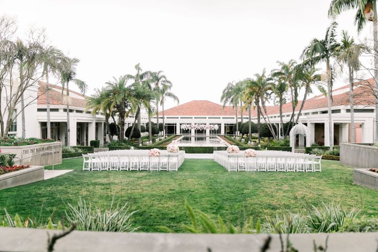 On top of the weather situation, there was a small incident in the kitchen so the whole venue had to evacuate. The Richard Nixon Library is a Federal building so they take these matters seriously. Thank God the rain stopped right on time while everyone were gathering outside the building. Once we were allowed to enter the building again, the venue staff and our KDWP team had to work fast to wipe down all of the chairs for guests to sit. We were lucky the sun was shining, who would’ve known from looking at the beautiful pictures that it was raining and we had that minor evacuation right before the ceremony took place.