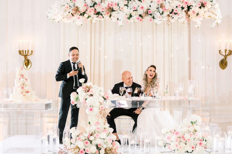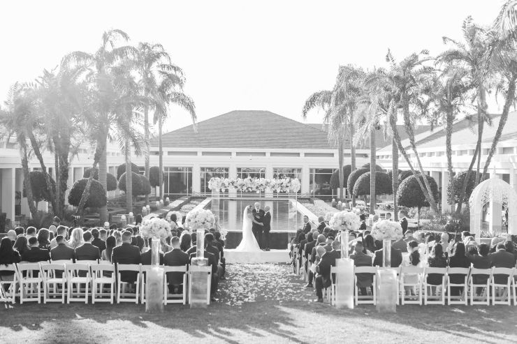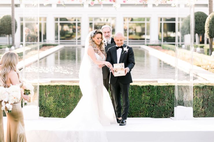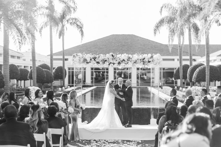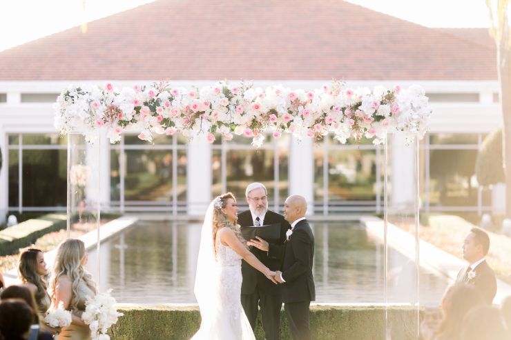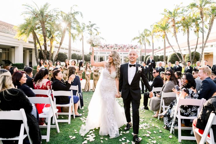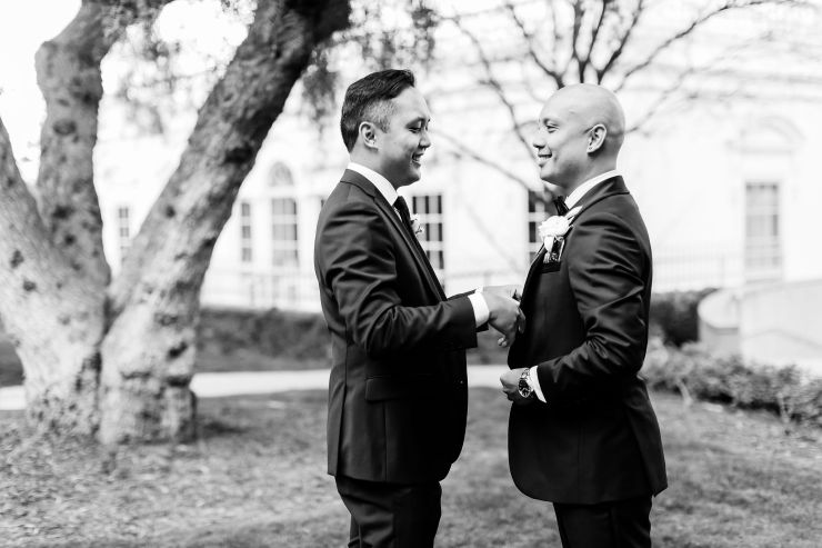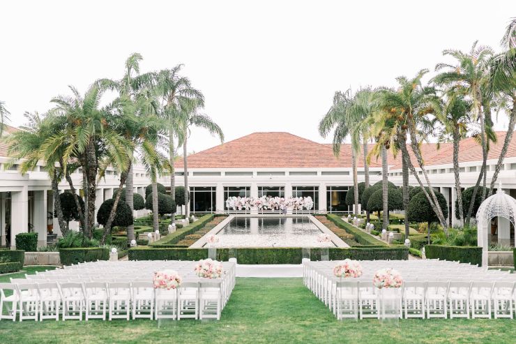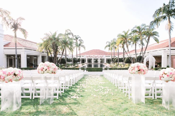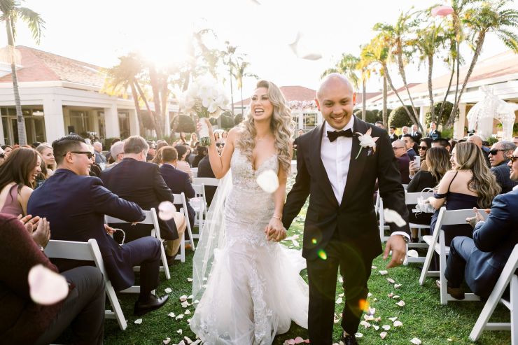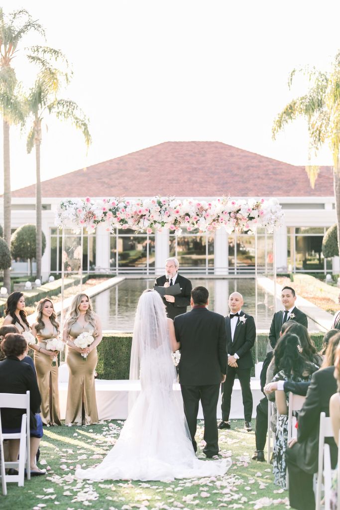 On top of the weather situation, there was a small incident in the kitchen so the whole venue had to evacuate. The Richard Nixon Library is a Federal building so they take these matters seriously. Thank God the rain stopped right on time while everyone were gathering outside the building. Once we were allowed to enter the building again, the venue staff and our KDWP team had to work fast to wipe down all of the chairs for guests to sit. We were lucky the sun was shining, who would’ve known from looking at the beautiful pictures that it was raining and we had that minor evacuation right before the ceremony took place.