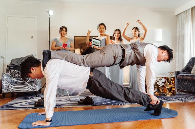 They had quick games before the bride could come out.